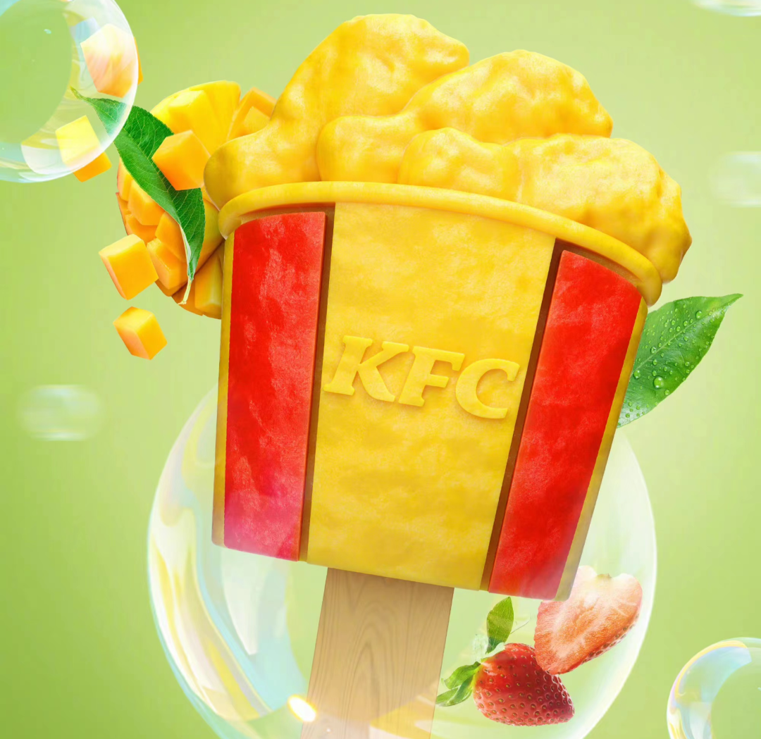 據品牌介紹,新品復刻了肯德基全家桶造型,為芒果草莓味。新品選用阿方索芒果搭配清甜草莓,含有草莓醬和芒果醬,果香濃郁,口感輕盈冰爽,且為0脂產品。品牌提示,新品可能有少量草莓籽和適量芒果纖維,屬正?,F象。