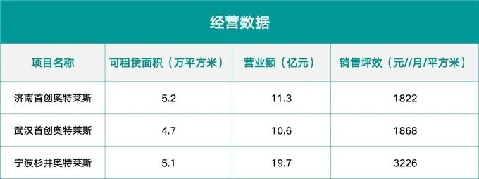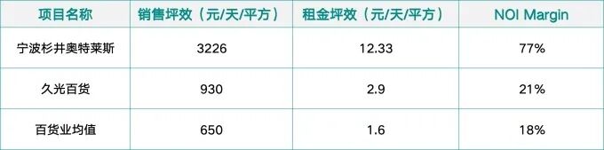 從已經發行了REITs的三個奧特萊斯項目的租金坪效這一最能反映經營業績的指標來看: